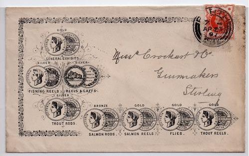 Printed advertising covers are collectable in their own right. This attractive one is advertising Malloch Fishing Tackle in Perth, and was sold for £79.94.