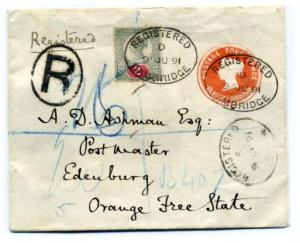 This cover fetched a good price at £97.45. As a franking it is not much to write home about, but because it is going to Orange Free State in Africa, it is much more sought after, possibly moreso by collectors of Orange Free State postal history as an example of incoming mail. This example shows the 4d rate to Africa plus 2d registration fee.