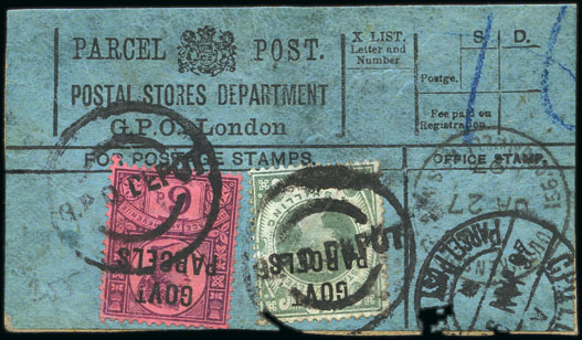 Up for offer were lots 31665 and 31666; two parcel labels with Gov’t Parcels overprinted stamps. Estimated at €150 each, they both sold for a very good price of €280+20%.