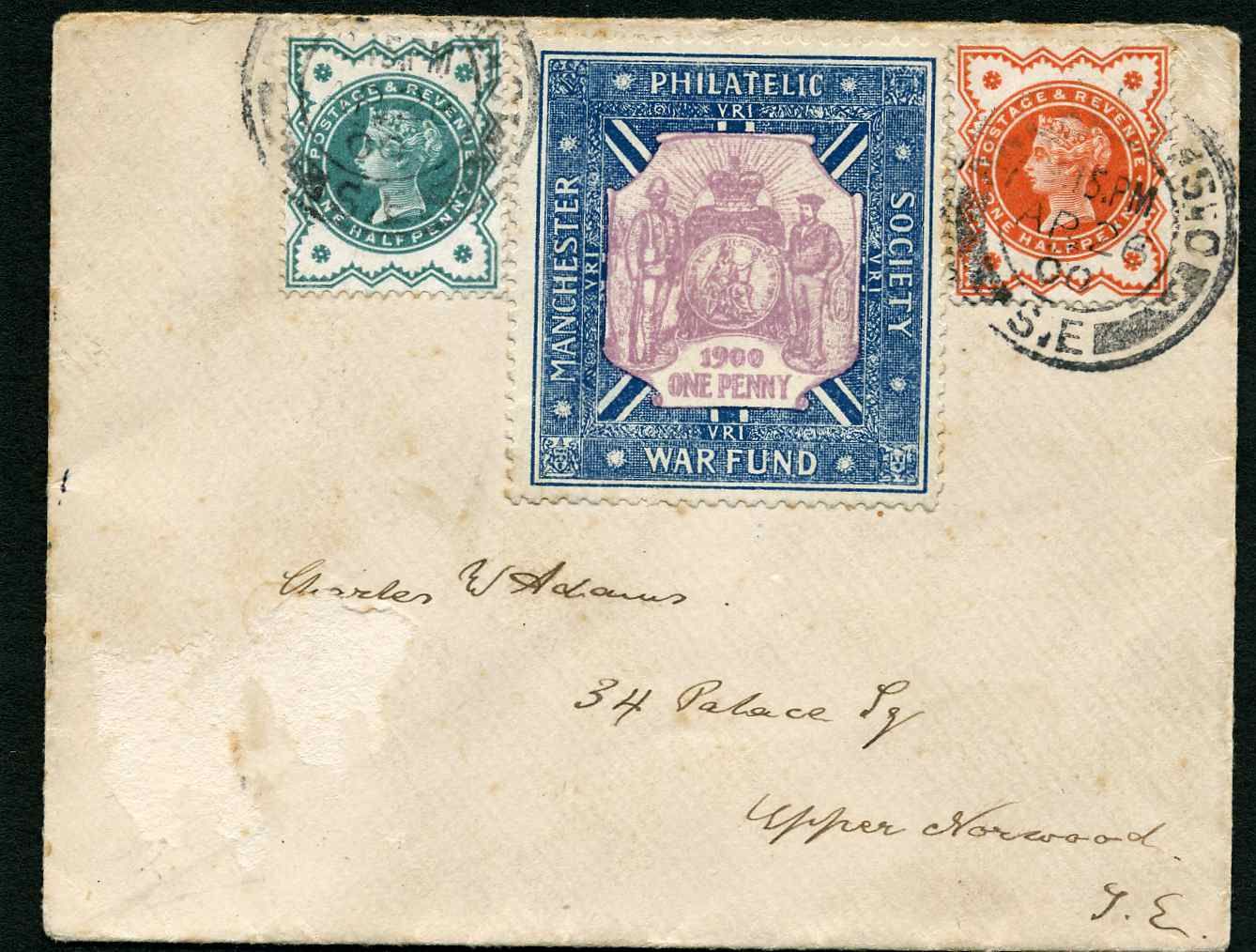 This attractive franking is on a printed envelope from the stamp dealer H. G. Hanson in Cardiff. Funnily enough I recognised this cover as I described it for a David Feldman SA auction and it sold a couple of years ago for €180. I don’t know if the buyer then was the same as the seller now, but it only sold for £93.78 this time.
