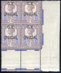 On November 29th 2012 Corbitts will sell another rare Office of Works marginal block of four. Lot 1646 is a block of the 10d Jubilee estimated at £7’000-10’000. In their previous auction, Corbitts sold a marginal block of four of the 5d Jubilee for £12’600 plus commission. Although it has a faint vertical crease, it is hinged on one stamp and has a clear 1945 RPS certificate. So expect this block to go for more!