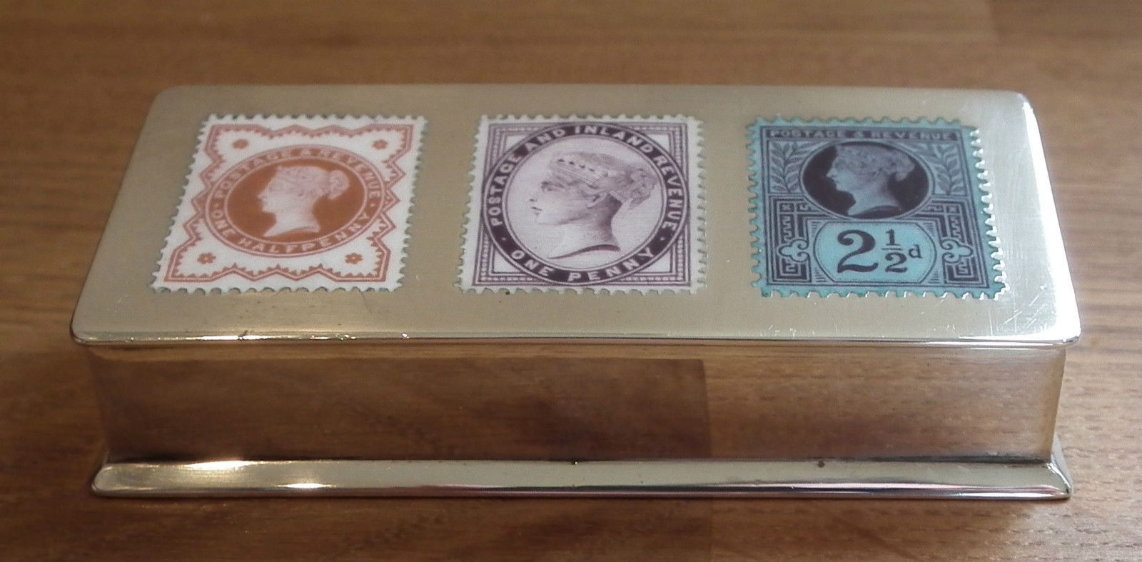 On a lazy Saturday afternoon I was watching Bargain Hunt when one of the teams picked up a small silver stamp box in the shape of an envelope. It reminded me of the [insert shameless plug here] phenomenal “Primrose” collection of stamp boxes which David Feldman sold in 2000, which in turn reminded me that I had seen stamp boxes in the past with enamel copies of Jubilee stamps on the lid. A quick search of eBay and bingo! This is a Sampson Mordan & Co silver and enamel stamp box, hallmarked London 1891 with a gilt interior and three enamelled stamps: a ½d vermilion, 1d lilac and 2½d purple on blue. It sold for £2670. Anyone looking for more information on stamp boxes are recommended to take a look at this site I just found: http://stampbox.org.uk/. I’ve also found a few different examples with enamel Jubilees so I’ve added a Stamp Boxes page in the Related Info section.