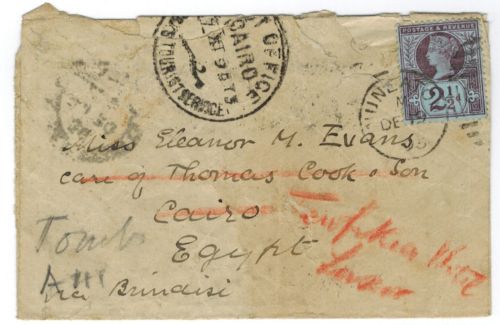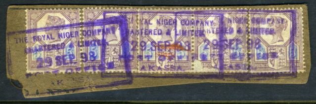 This 2 1/2d has a rather fine strike of the Aden squared circle ds. This stamp would have been attached to a cover posted on board a ship and cancelled when it was sorted in Aden. It sold for £9.34.