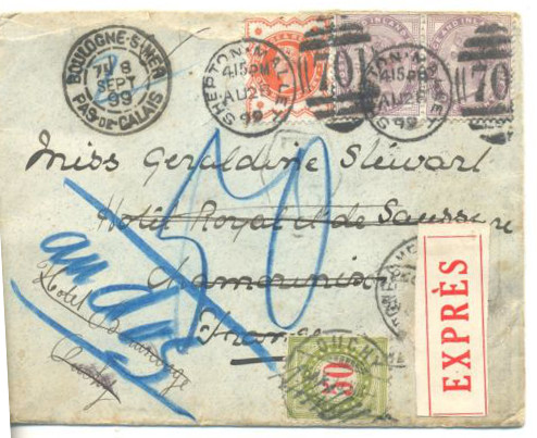 Although this next cover just about qualifies for this blog because only one of the five stamps are a Jubilee, I couldn’t let this beautiful cover pass by without mentioning it. For a little extra interest, there is even the manuscript “Posted out of course”, which means it would have been dropped in a letter box instead of being taking to the post office to be recorded. It sold for £295.95.