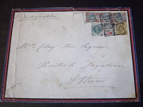 And finally this attractive multiple Jubilee franking sold for £63.95. Although a little bit grubby, the stamps pay a scarce high franking of 1s 5 1/2d to Greece.