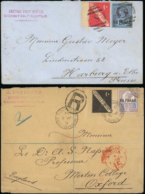And to recommence, I start with this unusual franking to Denmark. According to the annotation in the lower left corner, the 6d is paying the extra registration fee for compensation up to £25 and the 2½d the normal UPU rate. It sold for £13.10 which is rather cheap!