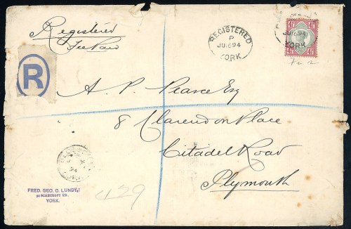 The above cover is an item I would liked to have added to my collection. Usages of the I.R. Official ½d blue-greens are very scarce and this example is particularly attractive with a pair sent from Newcastle upon Tyne. At £100.01 it was cheap.