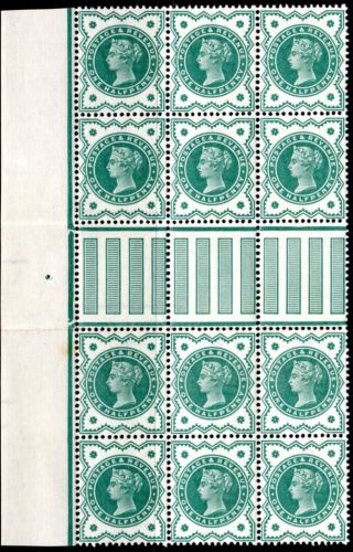 This stamp is one of the very few and certainly best example of an offset that I have seen on the 1/2d green. This is caused when a sheet of stamps is placed on top of another sheet that still has wet ink, leaving a mirrored impression on the gum. It sold for a very reasonable £75.50.