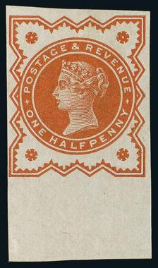 Unmounted o.g. imperforate (lightly mounted on sheet margin) top marginal example, sheet position R.1/9, with a light diagonal gum crease
