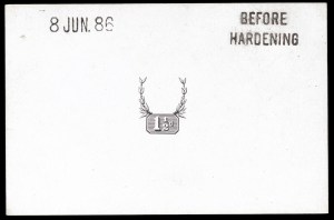 | Date: 12 Apr 86 Inscribed: 1 ½d in manuscript |  | Ex Lady Mary Buiri realised £978; For sale by SG (2008) for £1’200; Ex Aureum, Stanley Gibbons, for sale £1’550 |