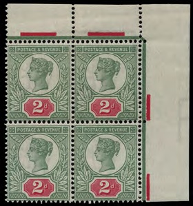 Setting 3B positional items are particularly difficult to find (despite the fact that 270’000 sheets were printed) as they can only be recognised from South-West or South-East corner pieces of the 240-set sheet or if they have an interpane gutter margin (Wiseman rarity K).