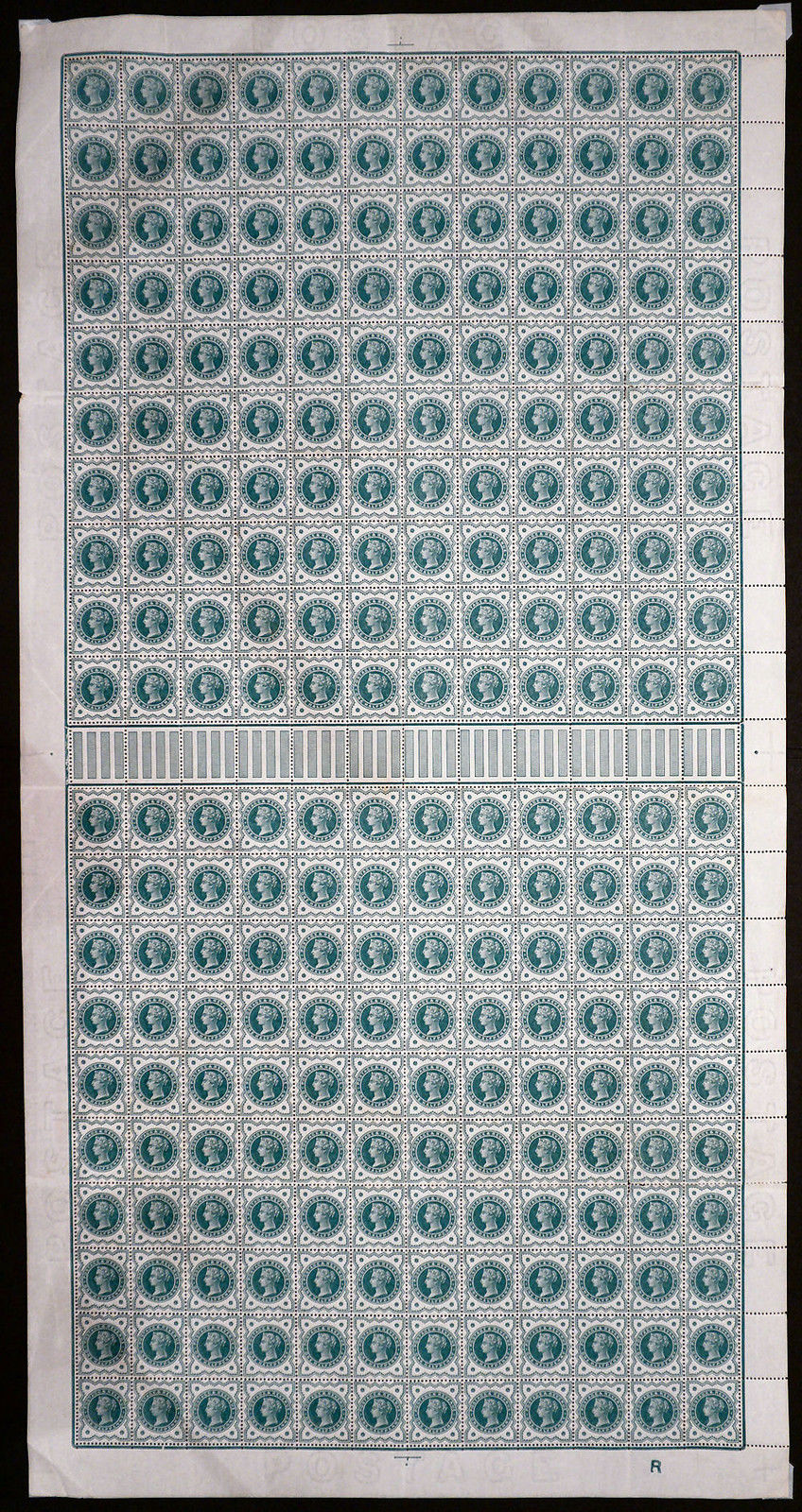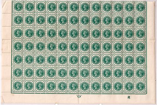 Cuts under 3rd and 4th stamp in row 20 and two cuts to right of stamp 12