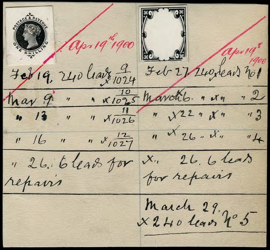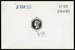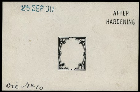 | Endorsed at left with dates worked on the die from Jan. 24 to Feb. 5 1900, all pre-date the completion of the die, blue tick in upper right corner | ![]() |