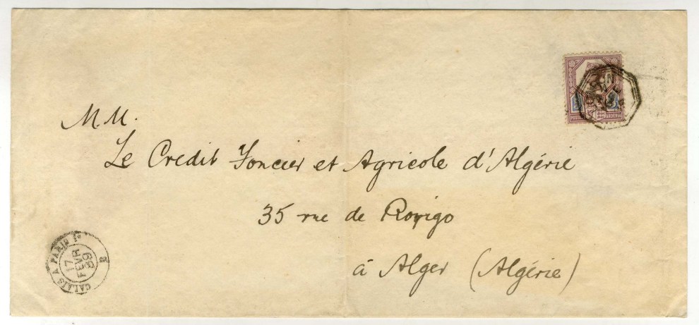 1889 (Feb 16) Envelope with 1887 5d Jubilee tied by London geometric cancel, sent to Algiers