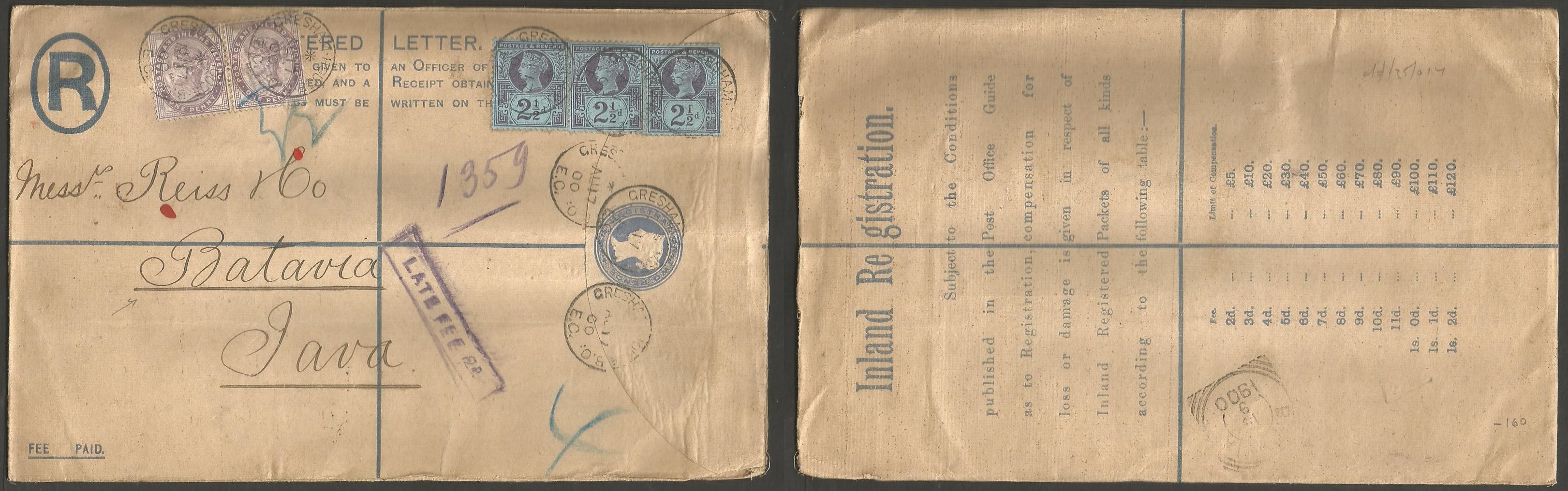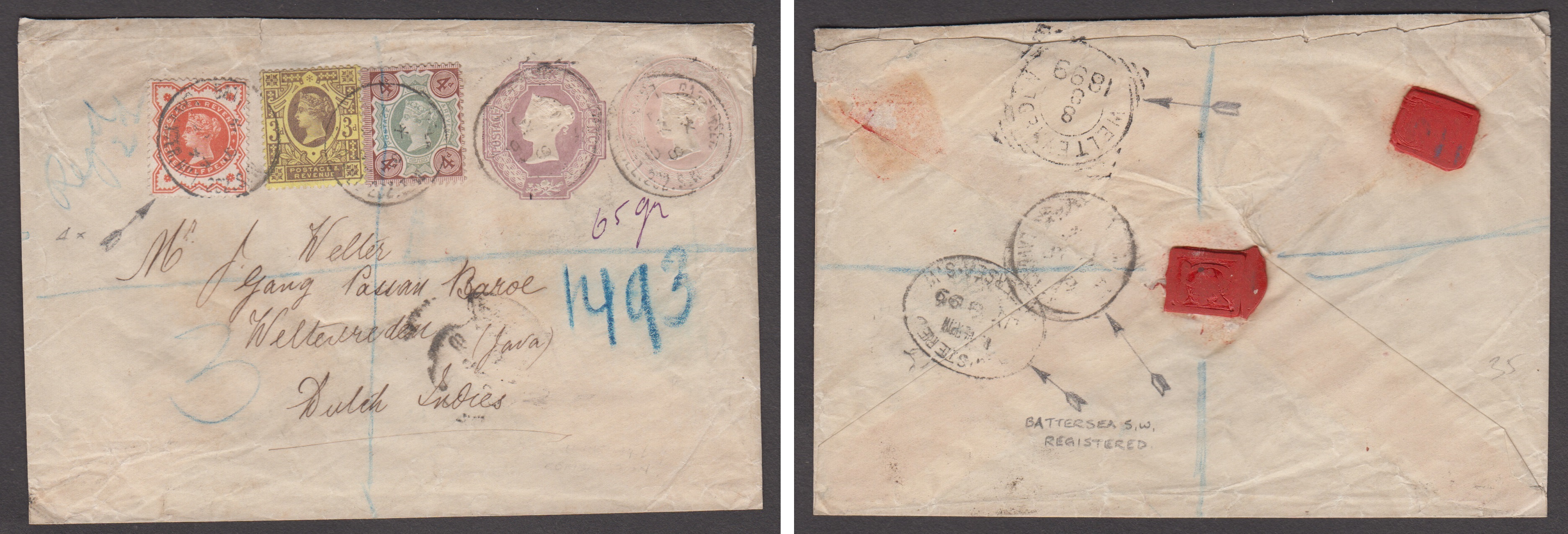 1890 (Apr 11) Registered envelope uprated with 1887 5d Jubilee to Medan, Sumatra