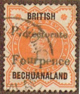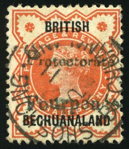 The surcharge printed in green was due to faulty cleaning of the inking roller. All examples known are cancelled in Shoshong.