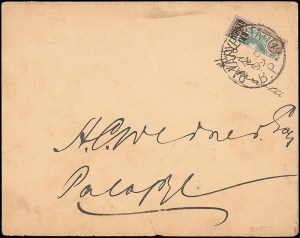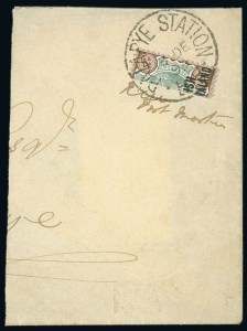 1899 (Dec 13) Envelope from Palapye Station to Palapye with 1891 4d vertical bisect, showing manuscript “R.M. Postmaster” below, cert. Behr (2007)