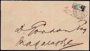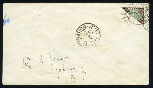 1900 (Mar 12) Envelope with 1891 4d diagonal bisect with adjacent manuscript “RM / PM” by the Postmaster, tied by Palapaye Station MR 12 00 cds with further strike adjacent, reverse with Mochudi transit
