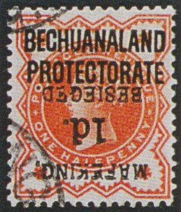 Mafeking, 1d., on Bechuanaland Protectorate 1/2d., verm., with inverted surcharge . . . £9 s10 od