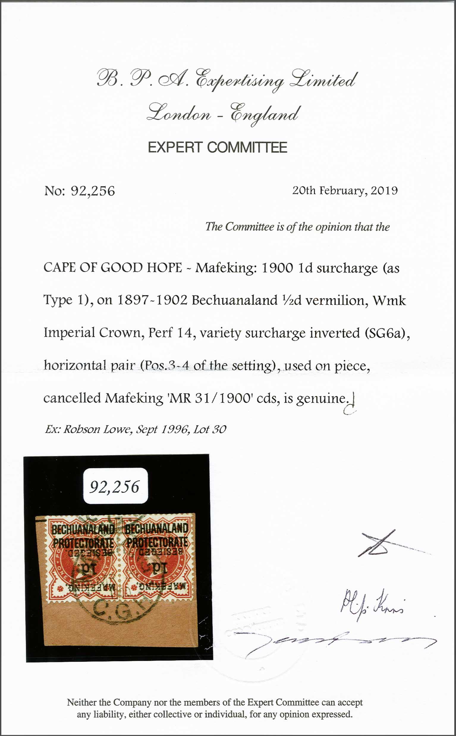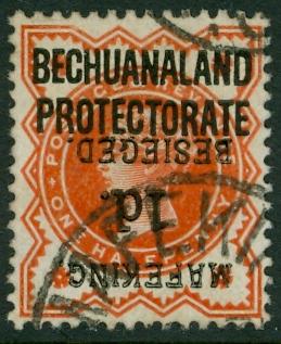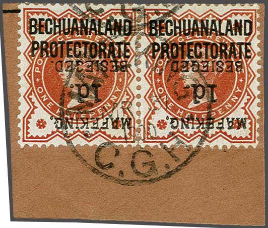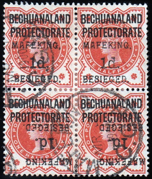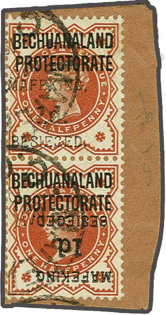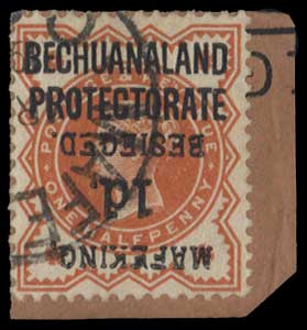 Mafeking, 1d., on Bechuanaland Protectorate 1/2d., verm., with inverted surcharge . . . £9 s10 od