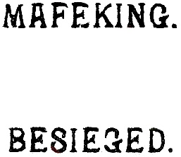 Setting 1: Comma after MAFEKING; F, E, K broken (K conspicuously across both legs); E of BESIEGED broken at lower corner.