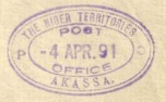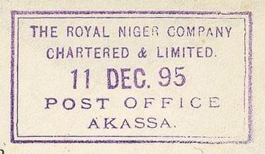 “THE NIGER TERRITORIES / POST / P / O / OFFICE / AKASSA” in oval
