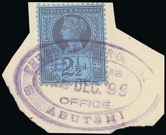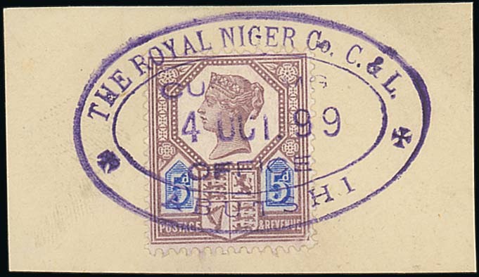 3) 1899 (Dec 5) small envelope to France, bearing G.B. 1897 21/2d. tied by “the niger territories/abutshi/post/office” dated oval and with a fine strike of Burutu boxed datestamp on reverse (soiled)