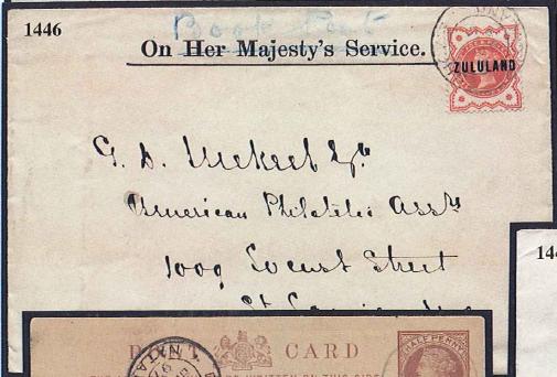 1894 (Jun 1) OHMS envelope to USA, endorsed “Book Post” with 1/2d vermilion tied by code A Eshowe cds, Durban bs