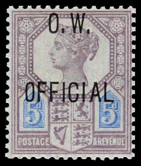 H.M. Office of Works (also known as the Commissioners of Works and Public Buildings) was incorporated in 1832 to take control over duties relating to official buildings which had formally been discharged by the Department of Woods and Forests. Its principal function was the overseeing, upkeep and maintenance of Government owned buildings, monuments and parks. Due to the nature of these duties its officers were stationed at a number of principal towns outside London. There were assistant surveyors at Bristol, Leeds, Edinburgh, Glasgow, Liverpool (which had a sub-office in Manchester), Birmingham and Southampton, and a representative was placed in each major Embassy abroad. The large number of dispersed offices led to a considerable usage of postage stamps on non-franked mail. This in turn led to the introduction of official perfinned stamps at an early date which is acknowledged in Stanley Gibbons Specialized Catalogue (Part I), but no details are given.