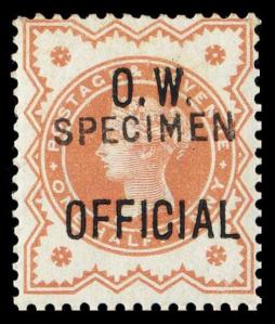 Office of Works 1/2d Vermilion Specimen and Cancelled Overprints